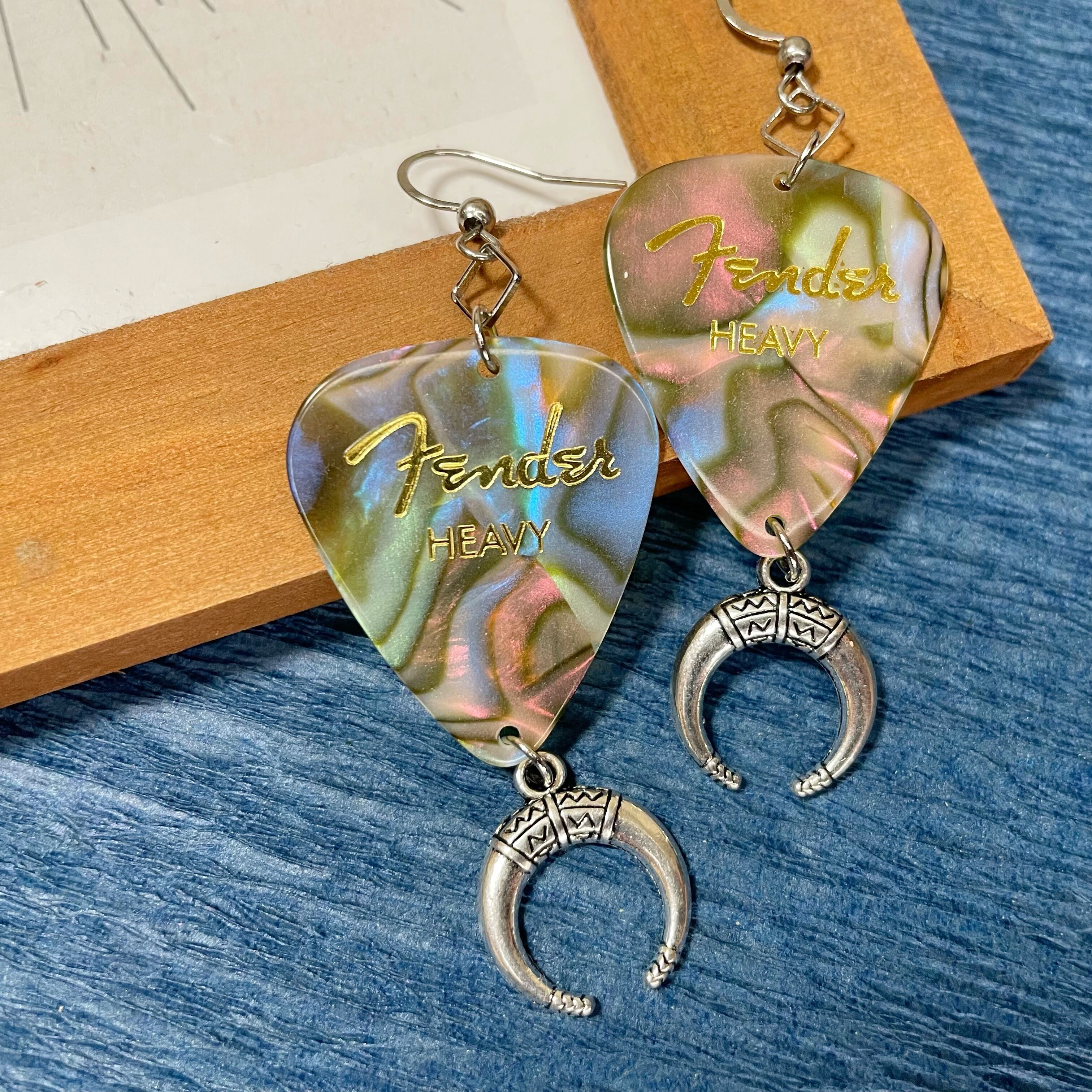 Fenderのピックにホーンモチーフのシルバーパーツを組み合わせたフックピアスです。