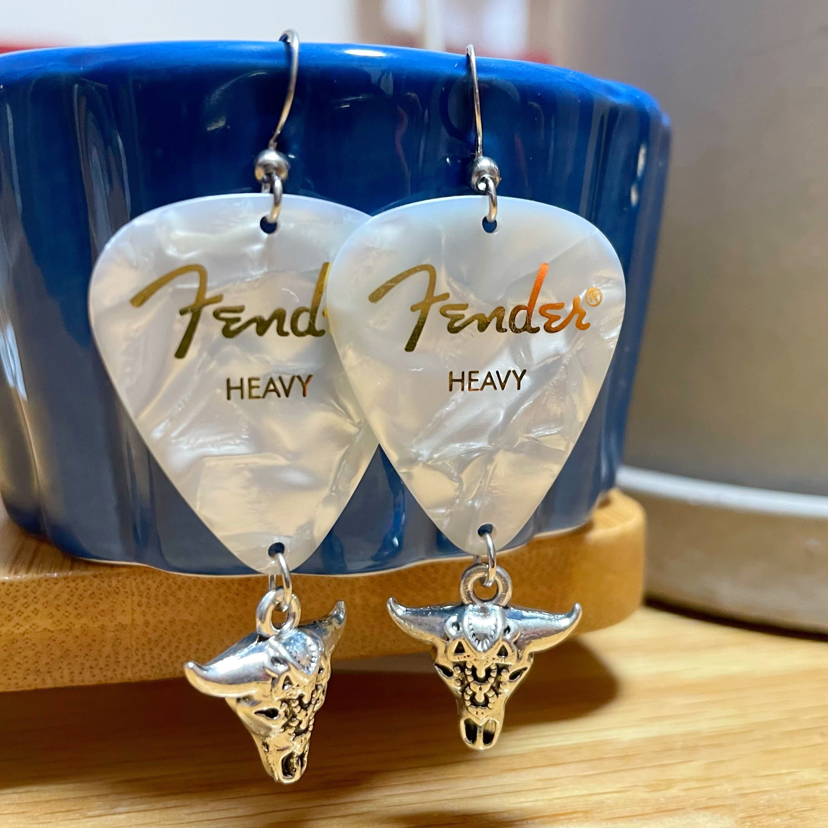 Fenderのピックにバッファローヘッドのシルバーパーツを組み合わせたフックピアスです。