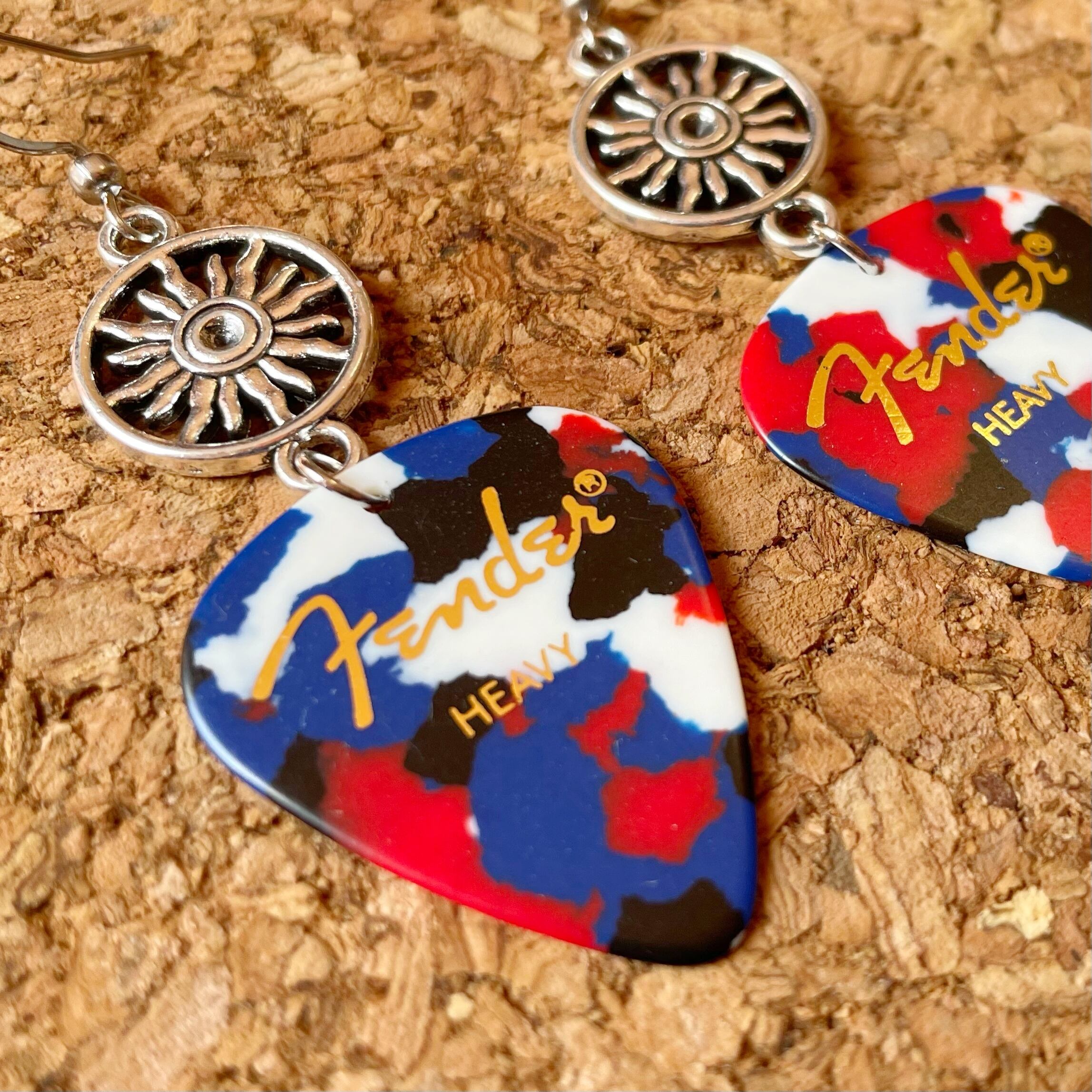 Fenderのピックとシルバーパーツを組み合わせたフックピアスです。
