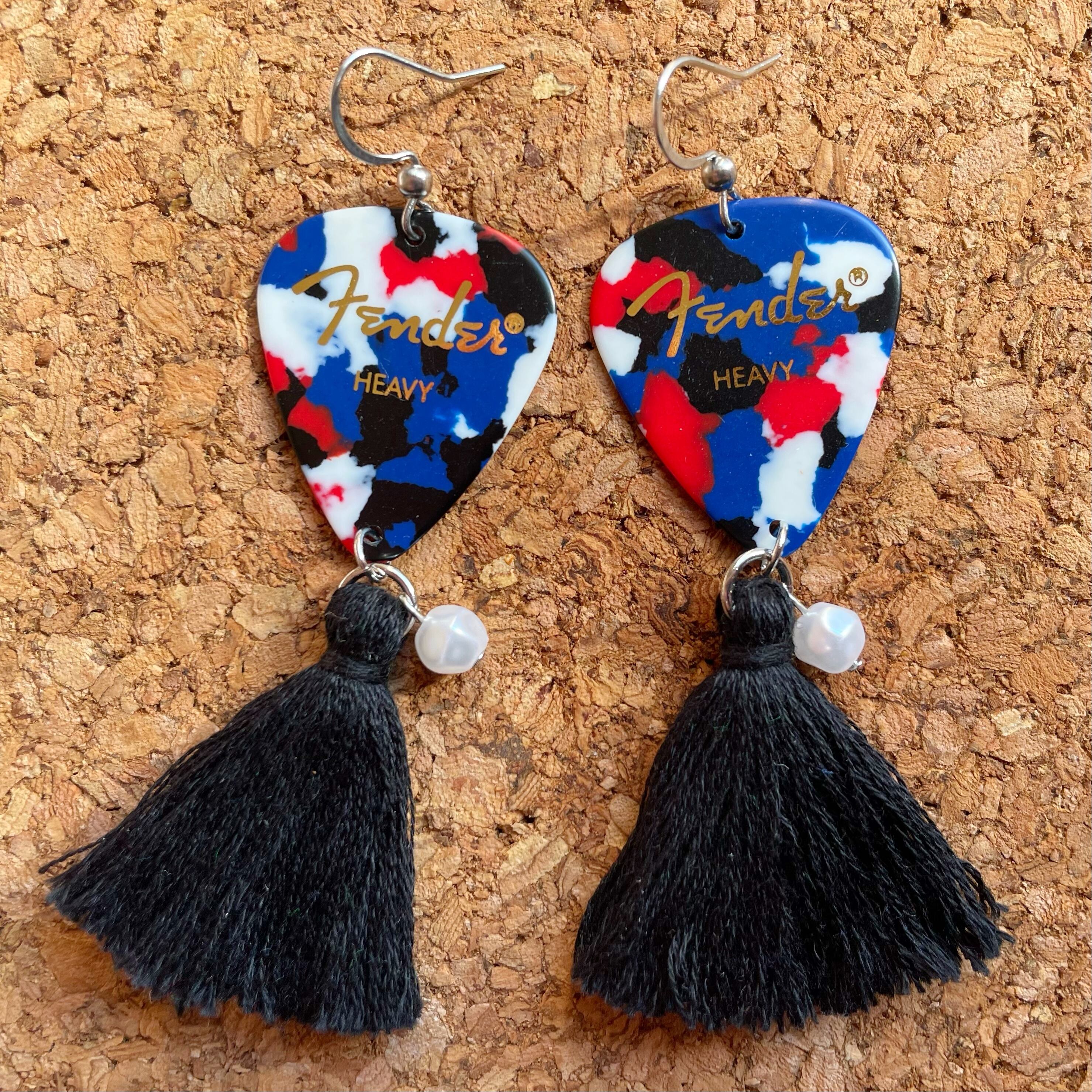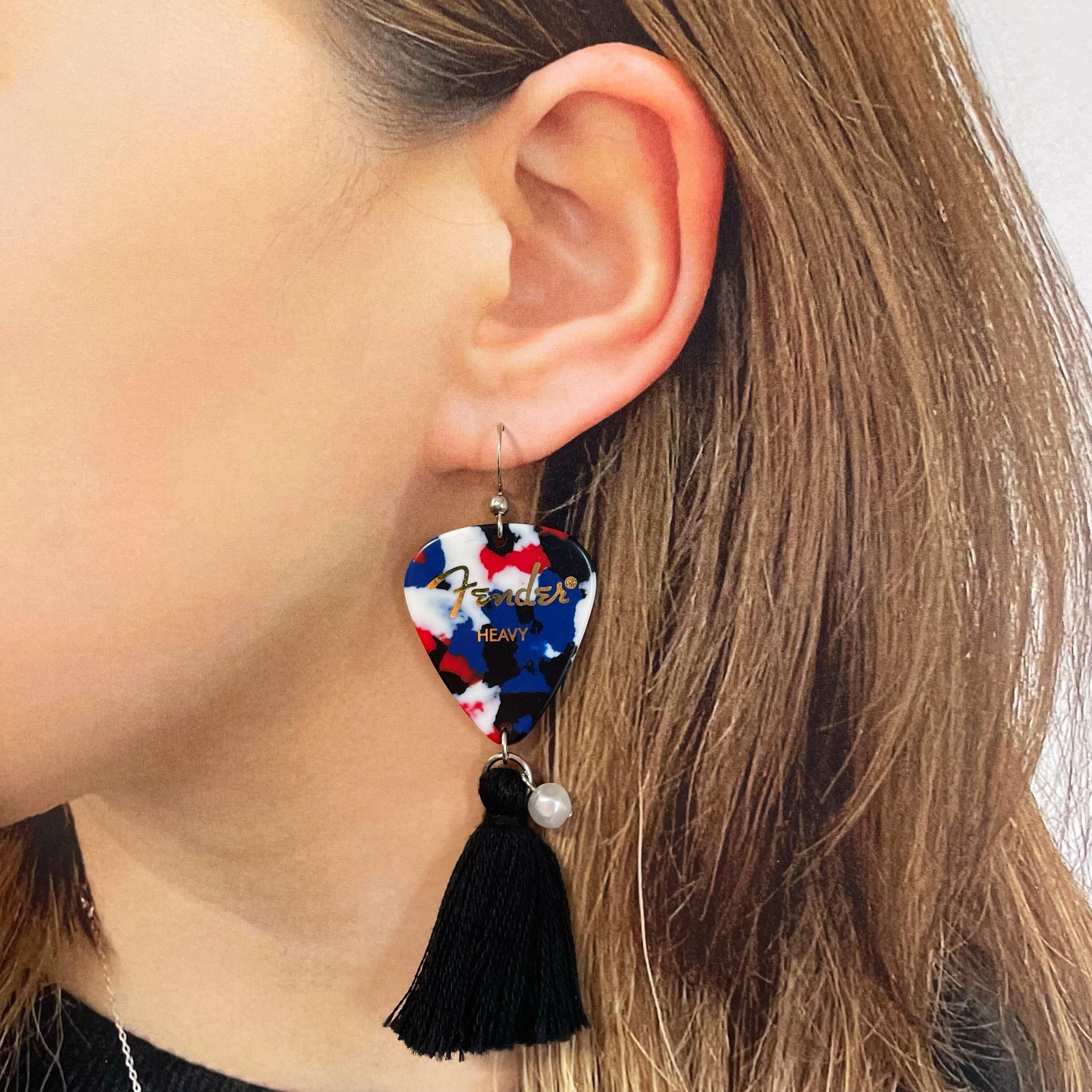 Fenderのピックとタッセルを合わせたフックピアスです。