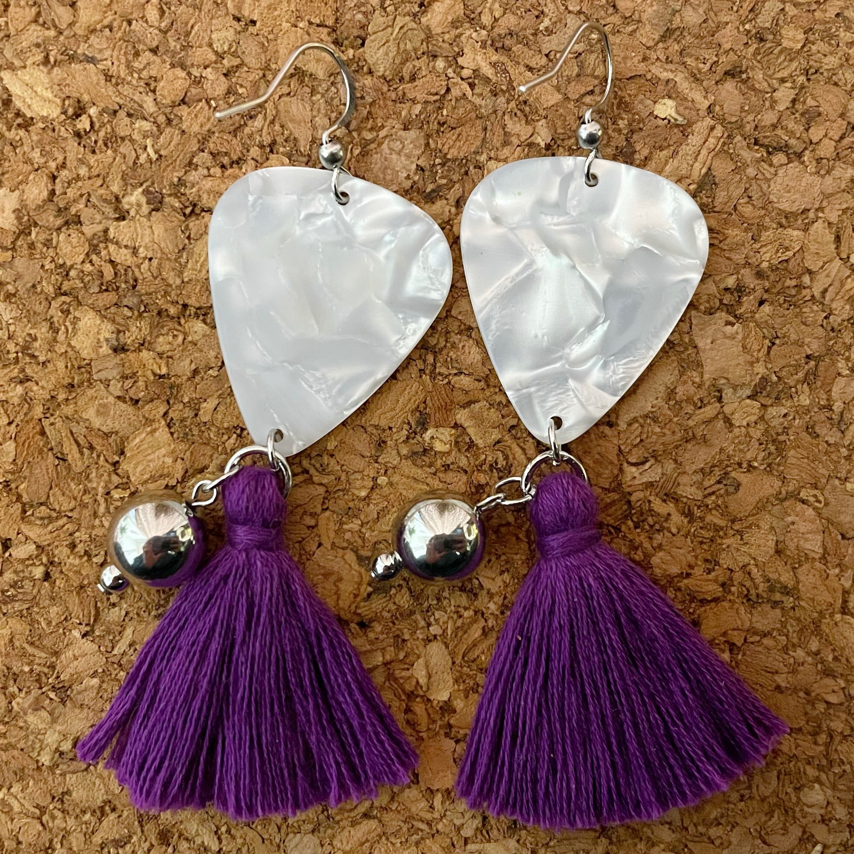 Fenderピック タッセルフックピアス White Moto パープル ホワイト