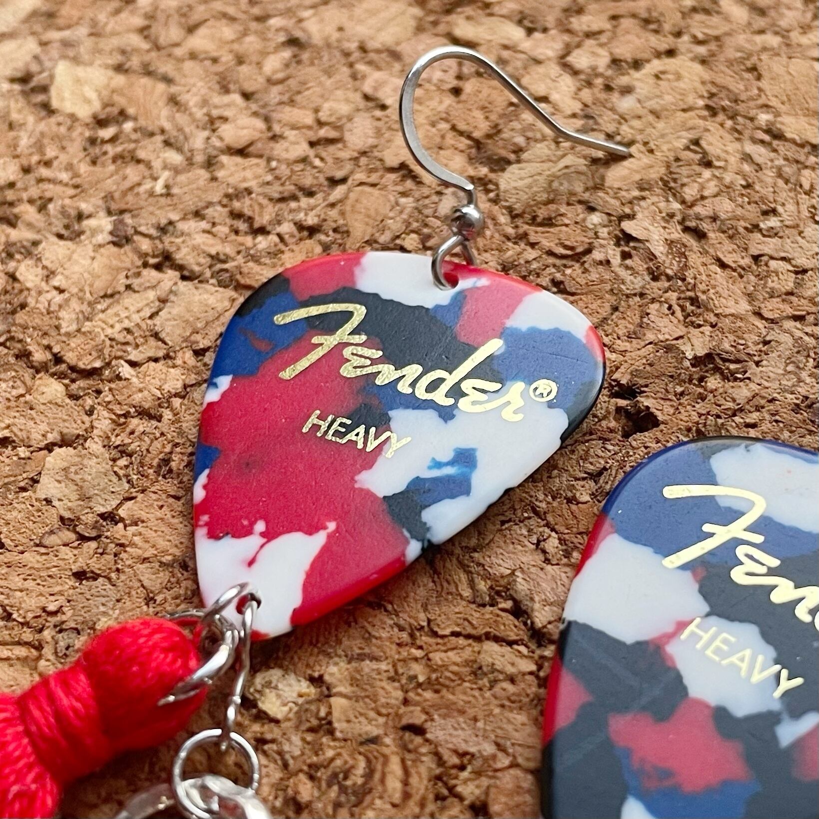 Fenderピック タッセルフックピアス Confetti レッド ブルー