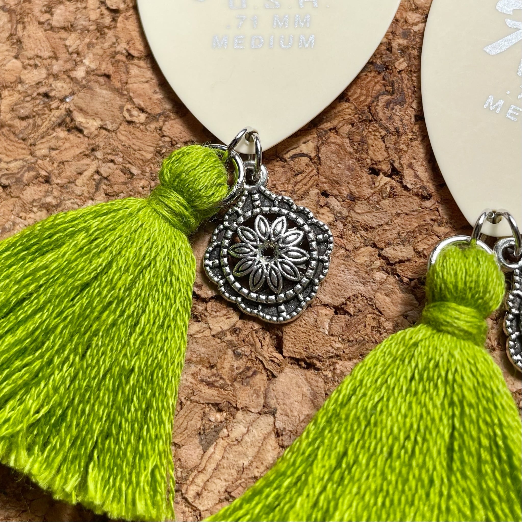 アイボリーのピックに落ち着いたグリーンのタッセルを組み合わせ、抹茶ラテのような柔らかな印象に仕上げました。