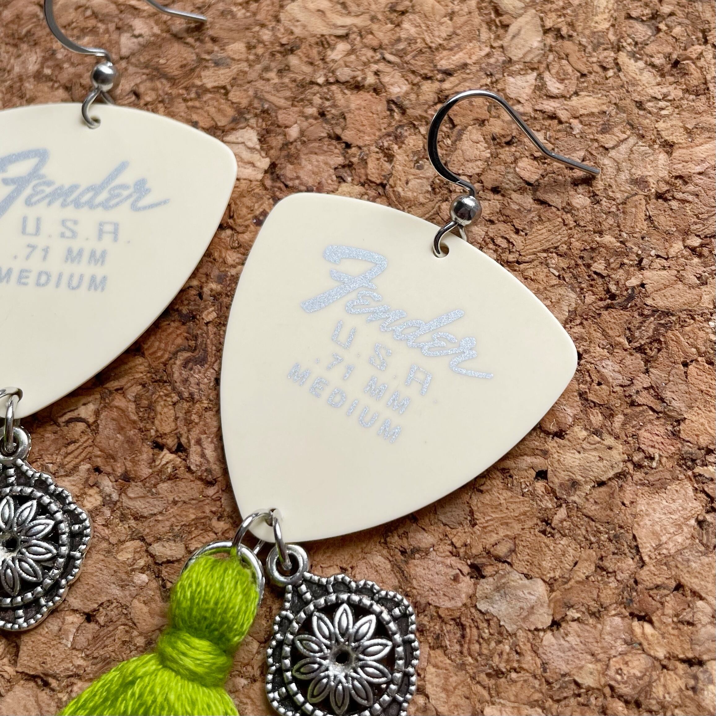 Fenderピック タッセルフックピアス アイボリー グリーン