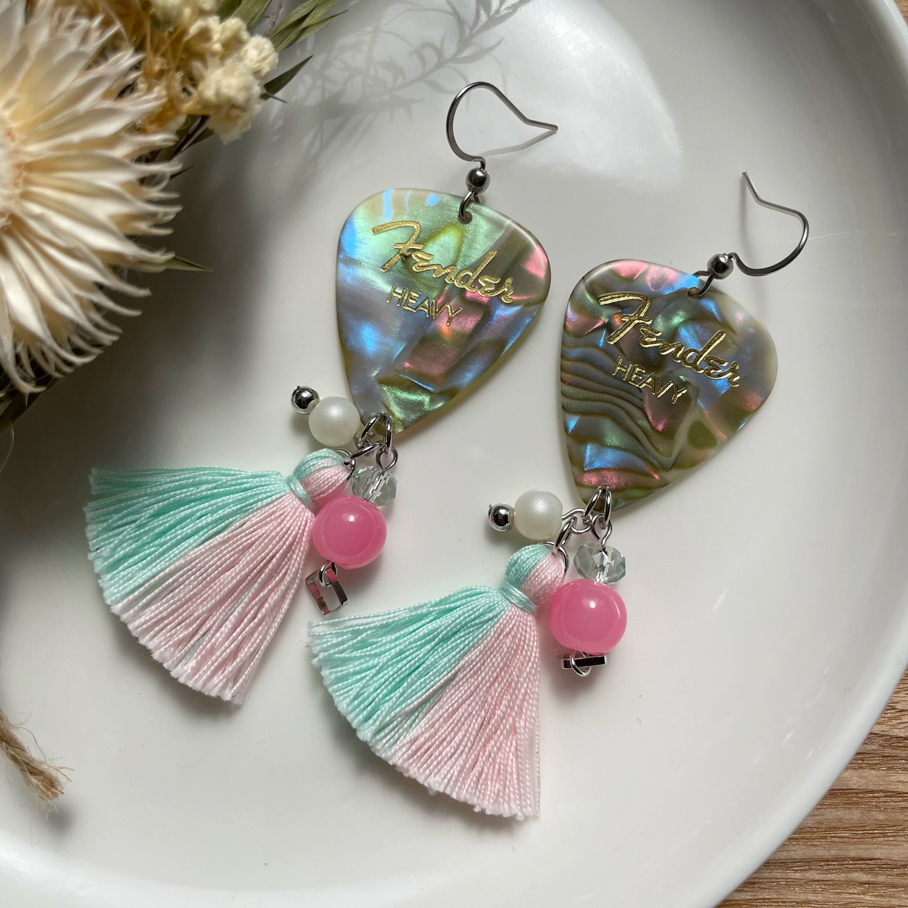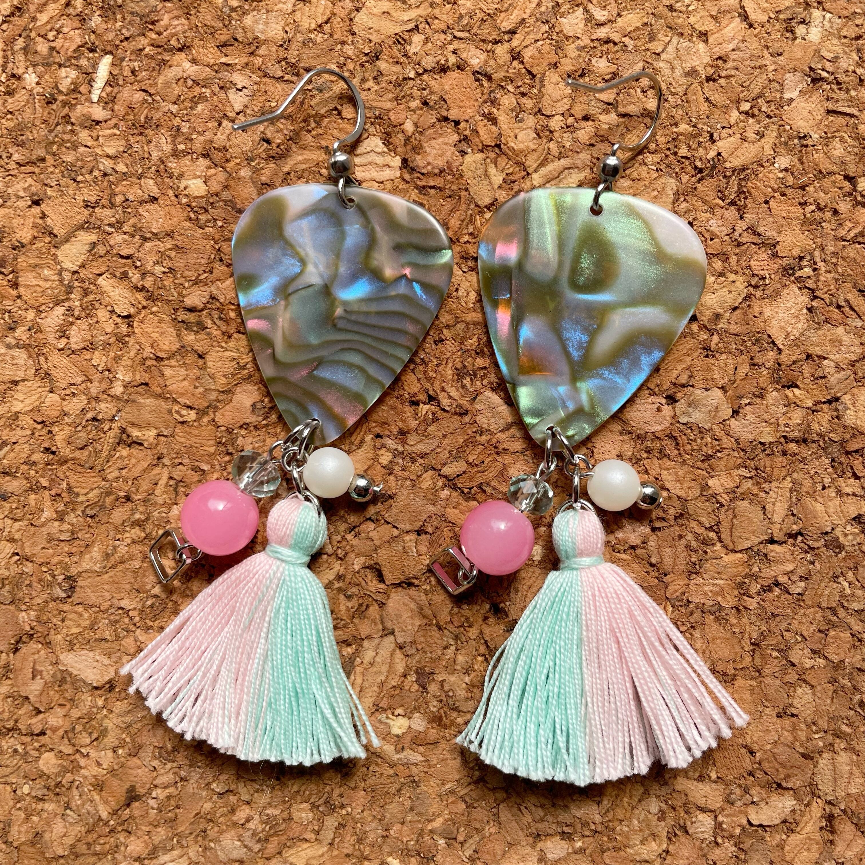 Fenderピック タッセルフックピアス Abalone ピンク ブルー