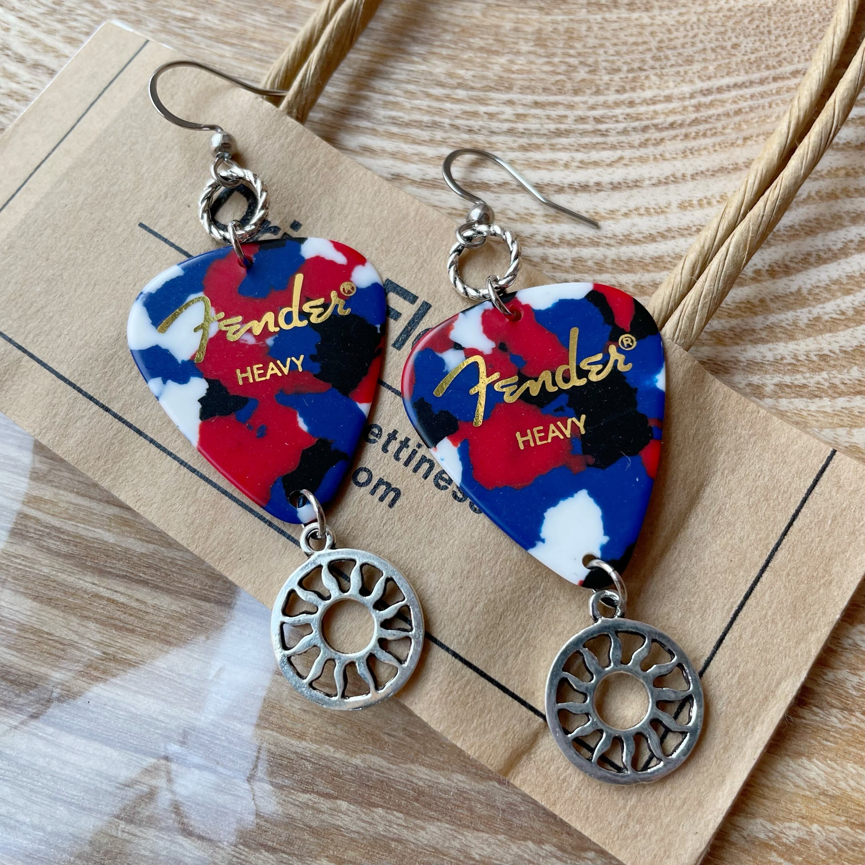 Fenderのピックとシルバーパーツを組み合わせたフックピアスです。