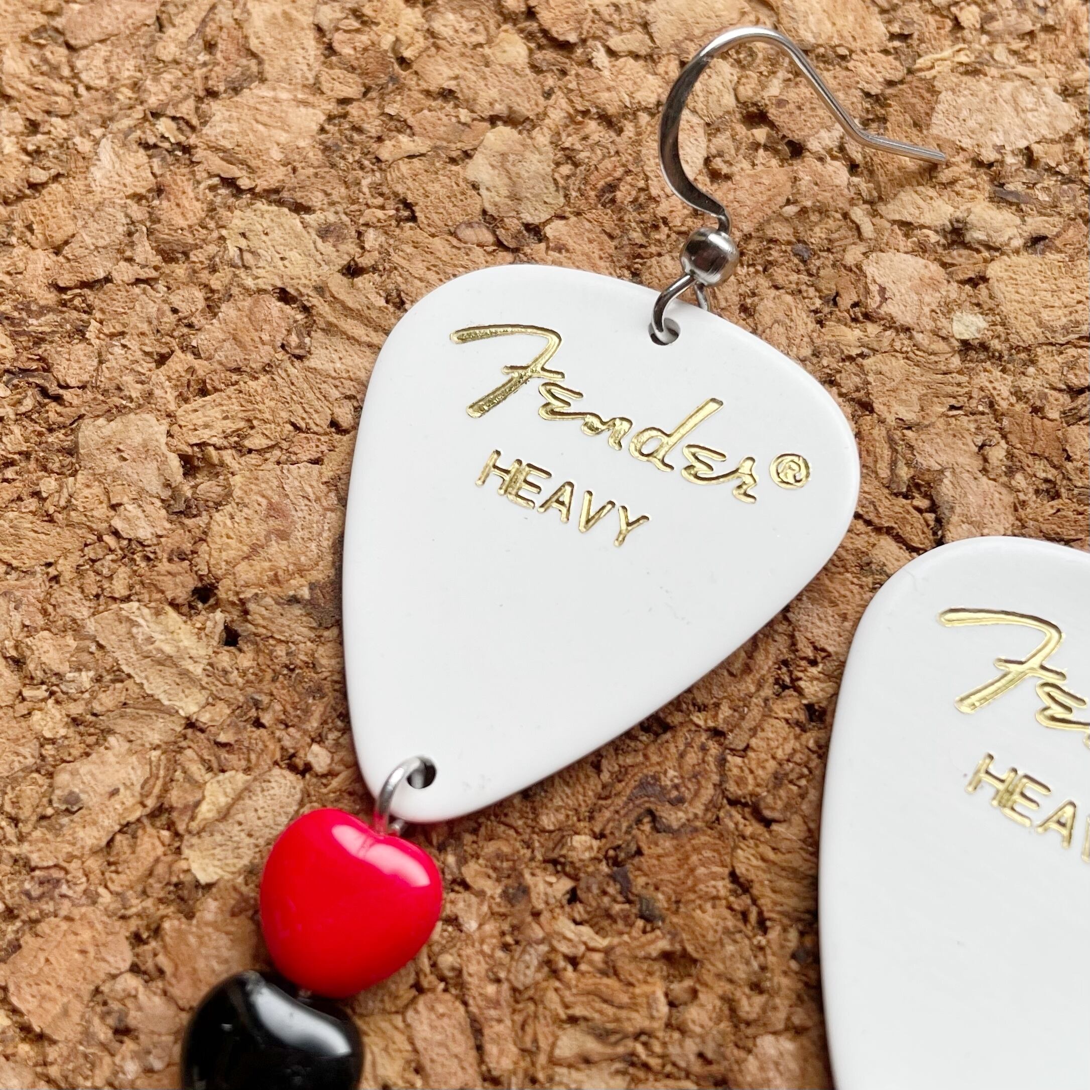 Fenderのピックとチェコビーズを組み合わせたフックピアスです。