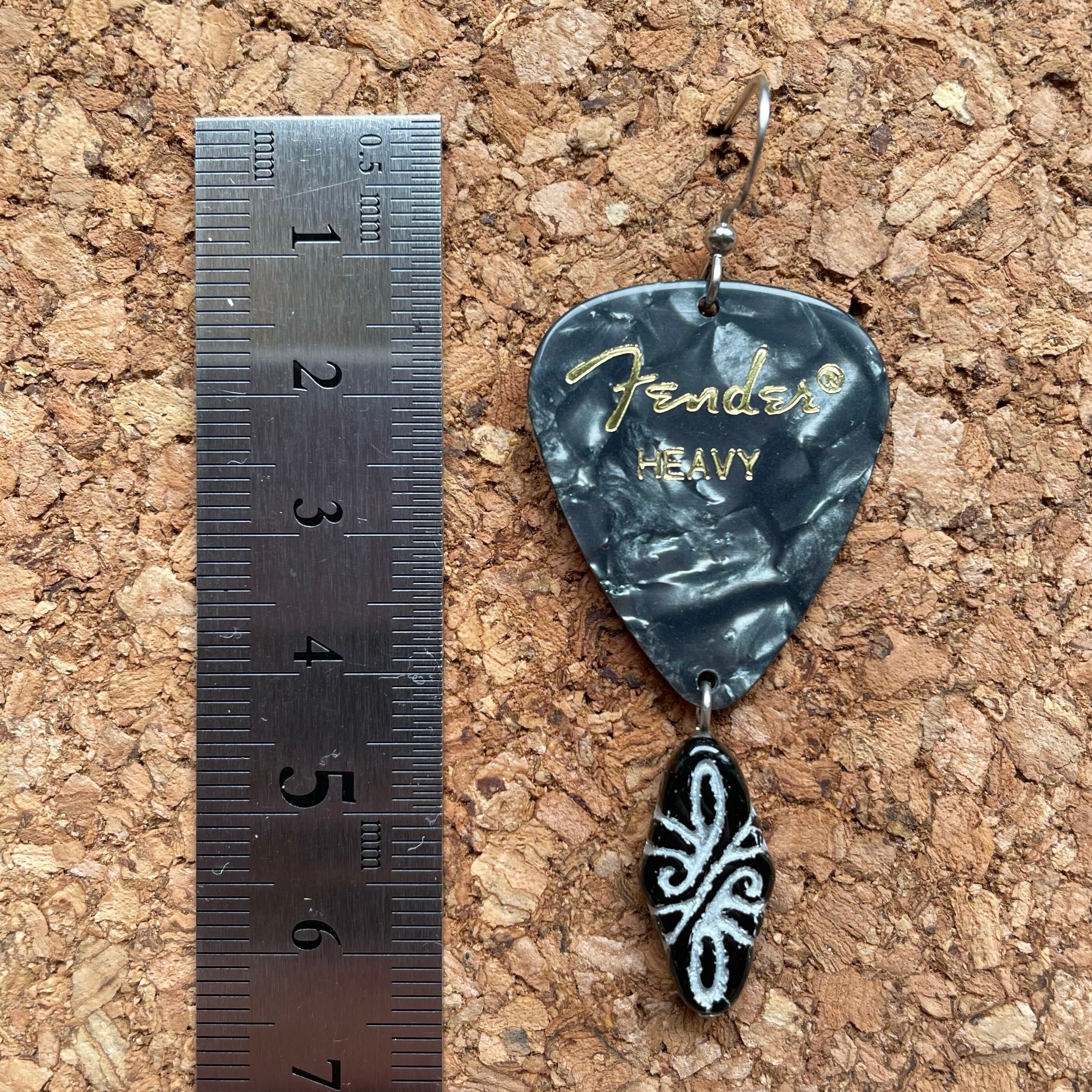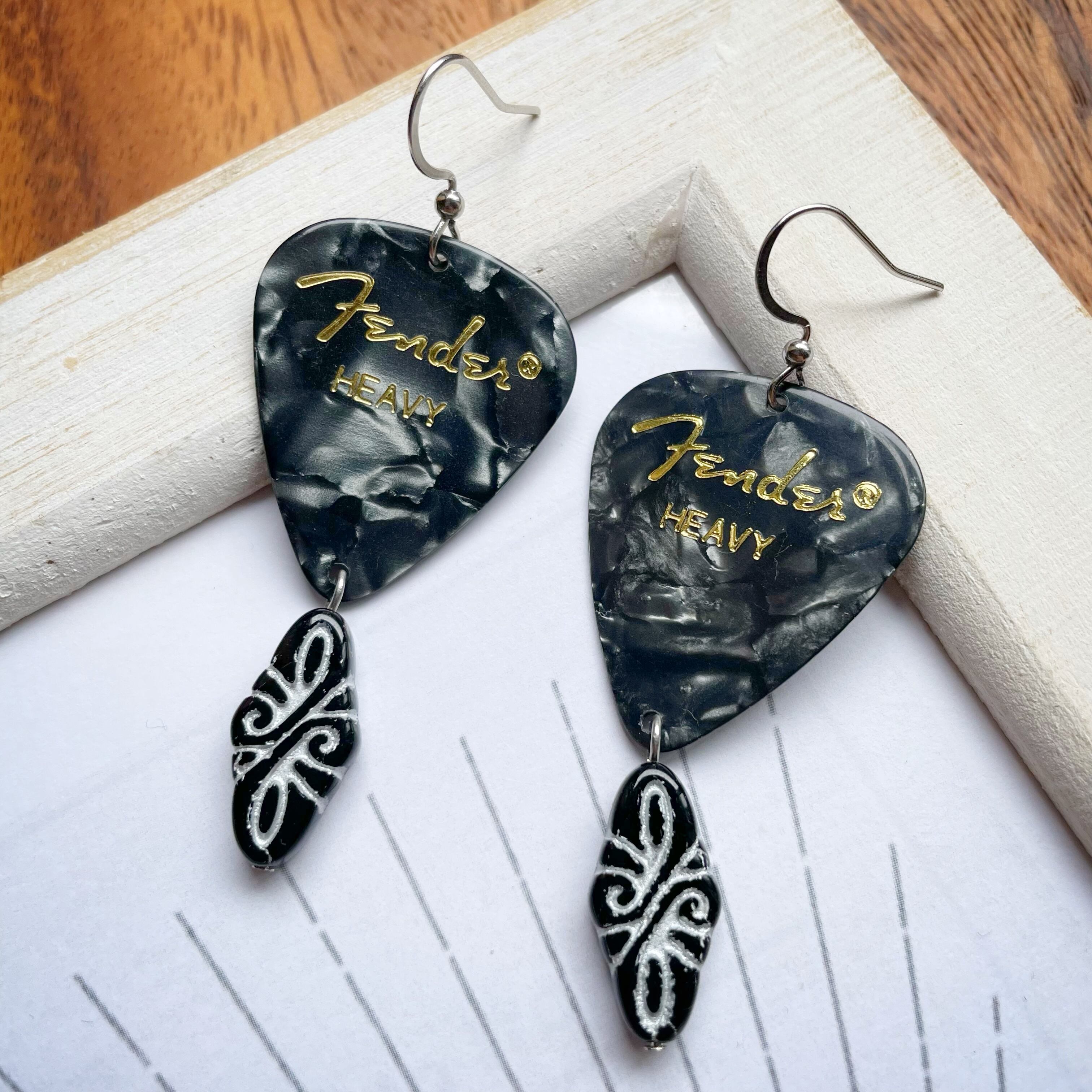 Fenderのピックとチェコビーズを組み合わせたフックピアスです。