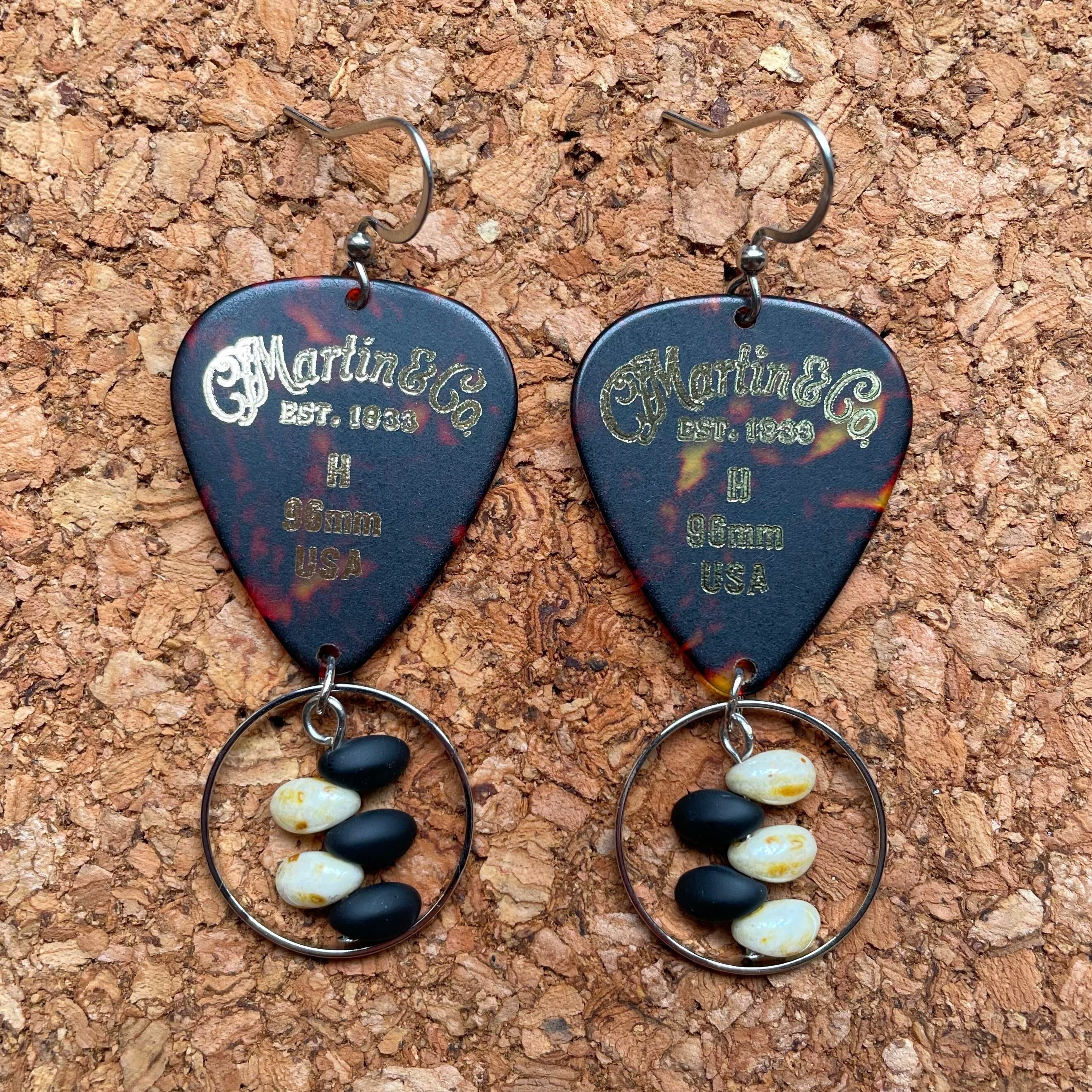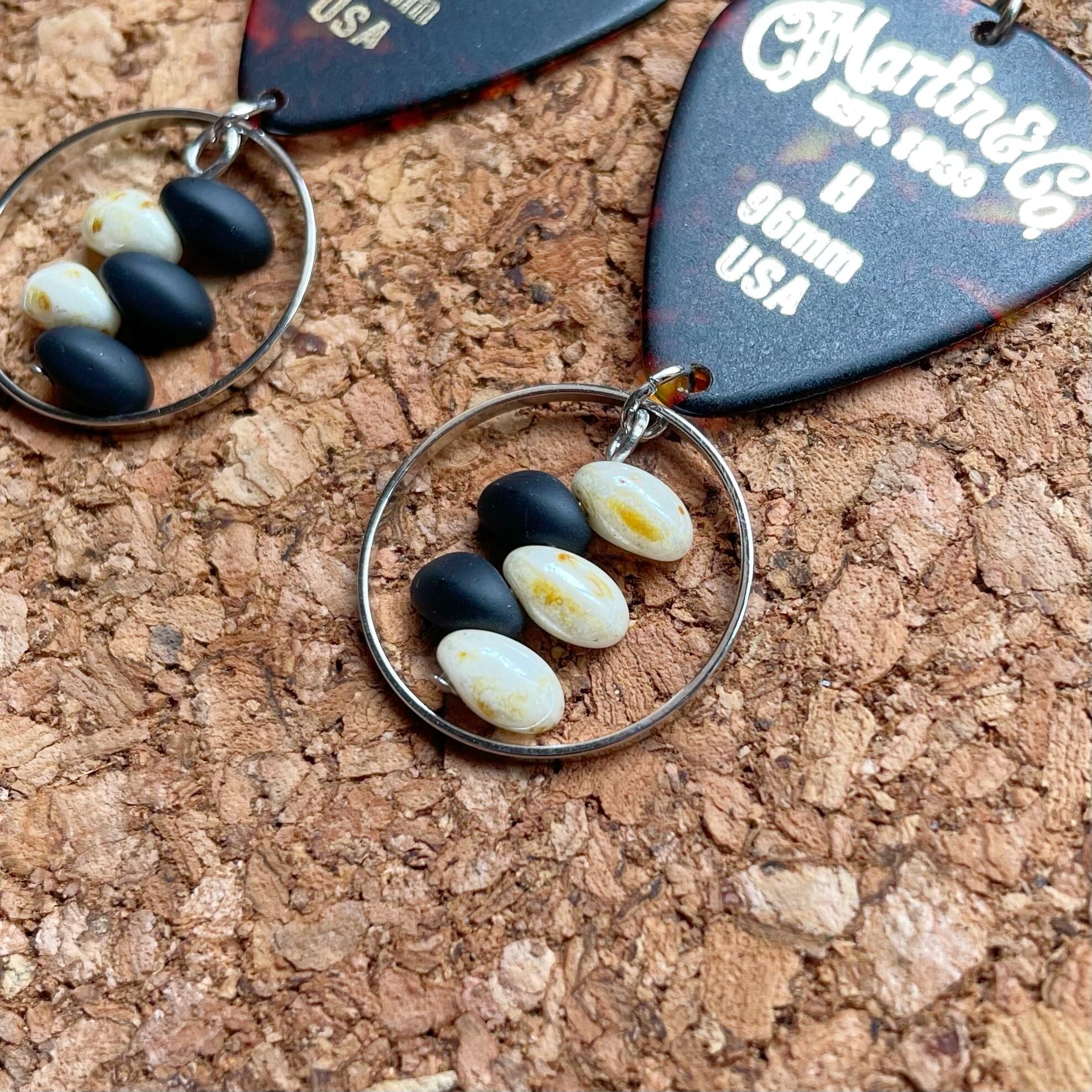Martinのピックとチェコビーズを組み合わせたフックピアスです。