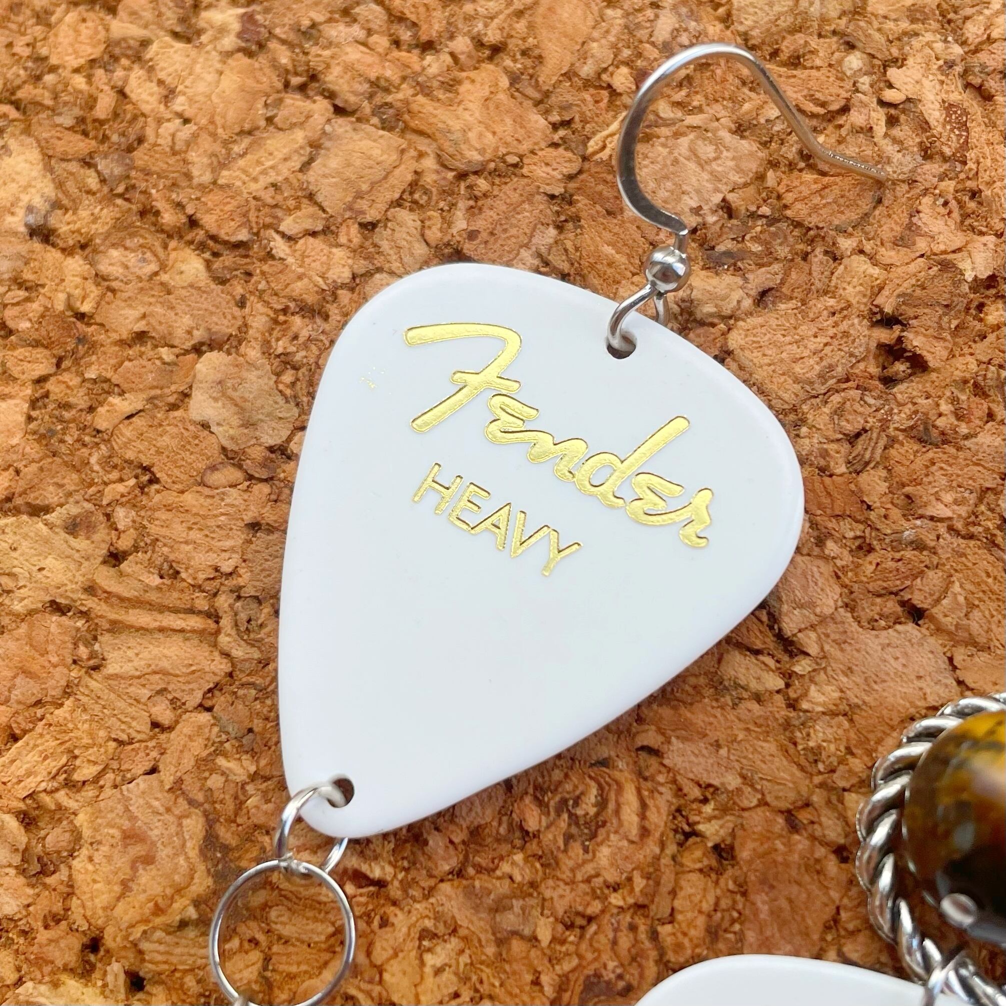 Fenderのピックと天然石ビーズを組み合わせたフックピアスです。