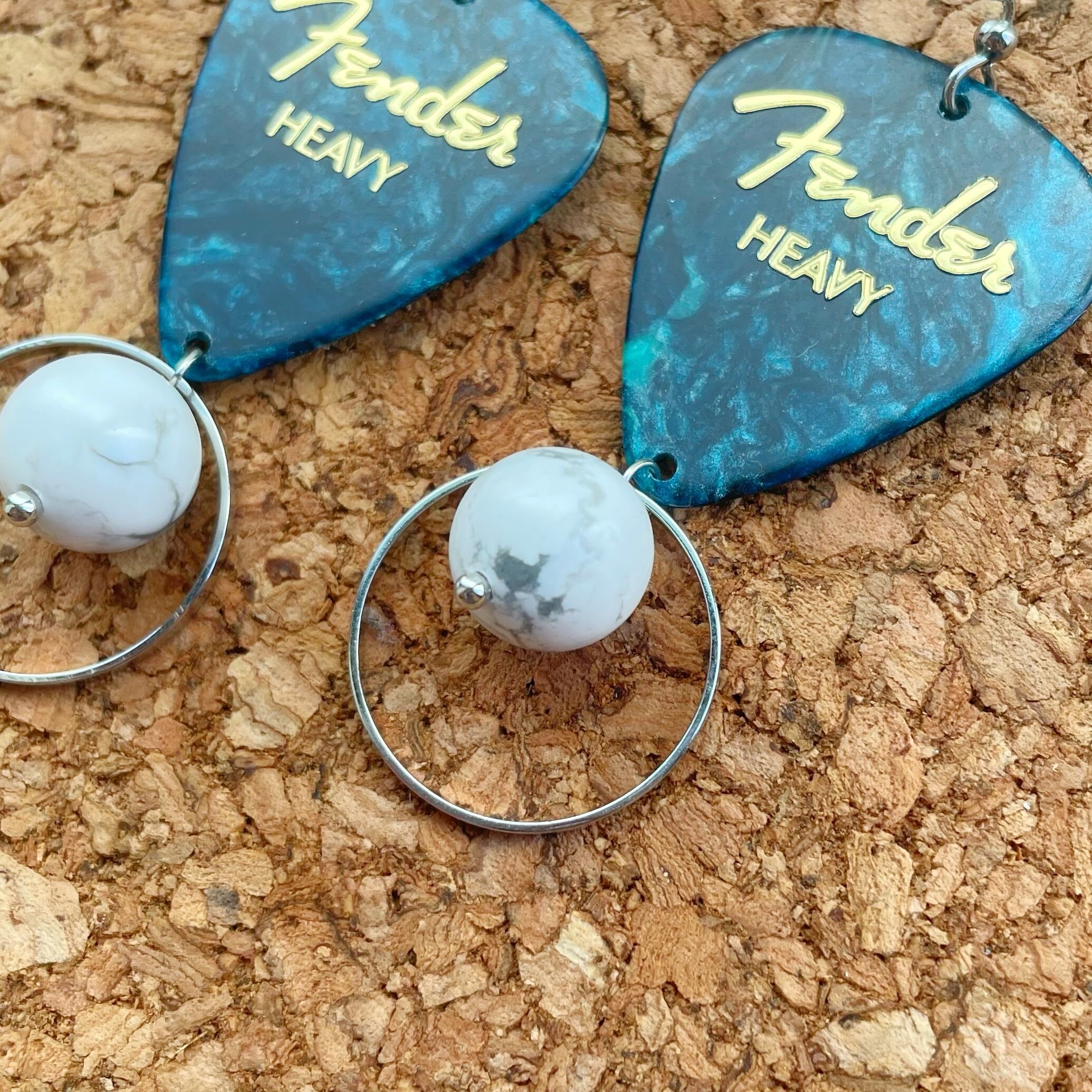 Fenderのピックと天然石ビーズを組み合わせたフックピアスです。