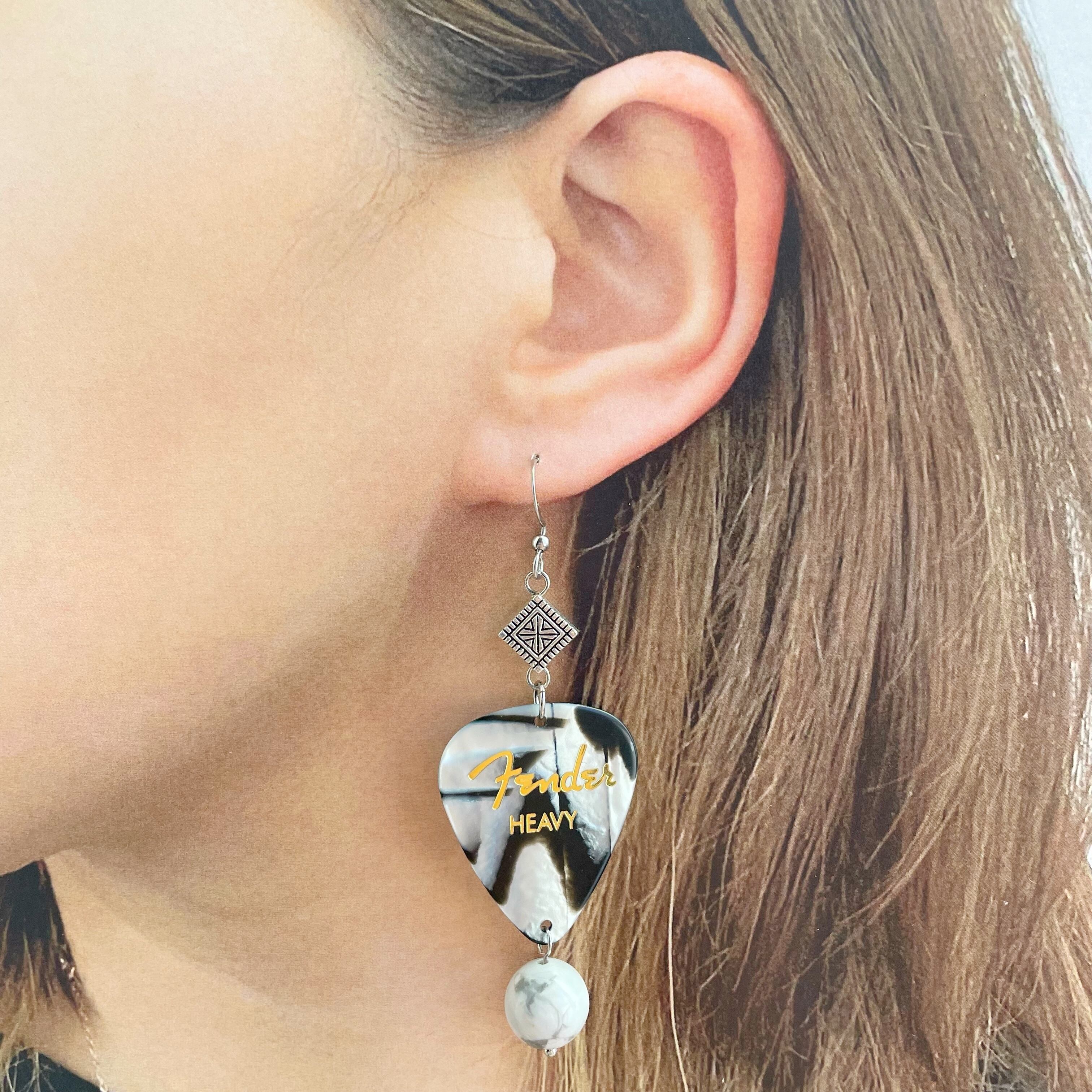 Fenderピック×天然石 フックピアス ハウライト