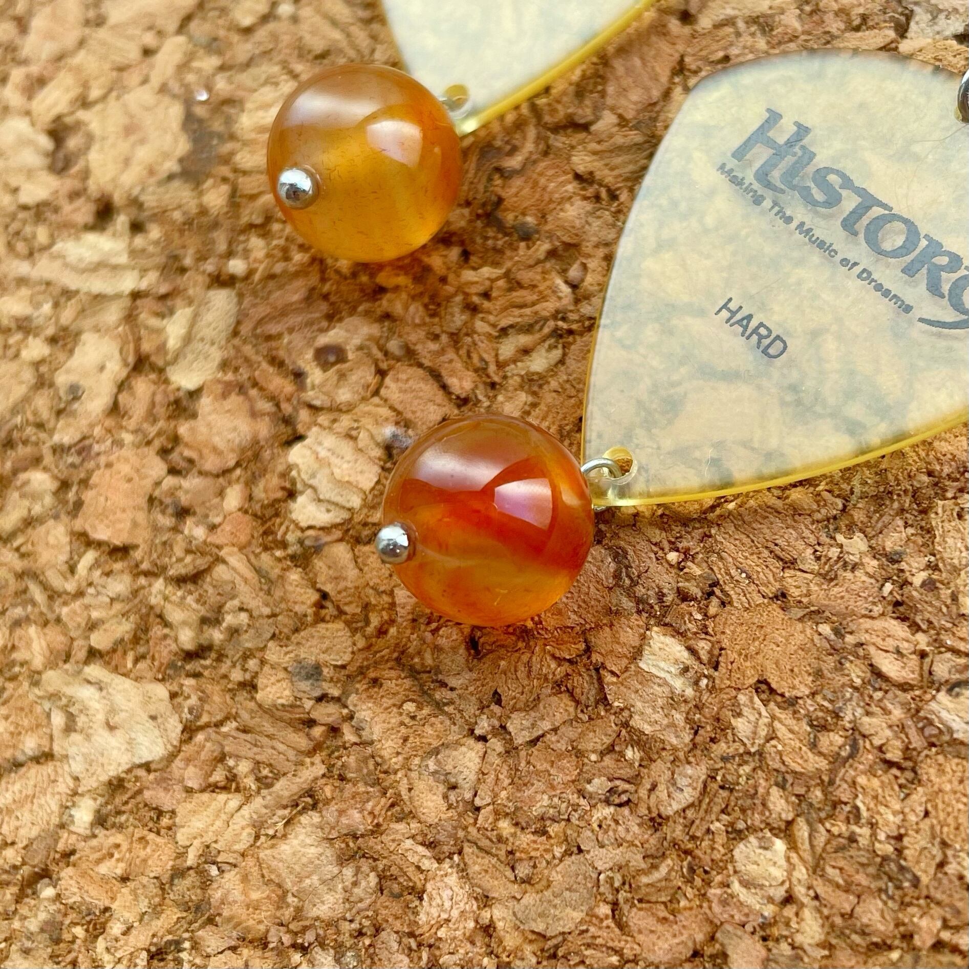 クリアイエローの透明感のあるピックにカーネリアンの爽やかなオレンジが馴染む一品。