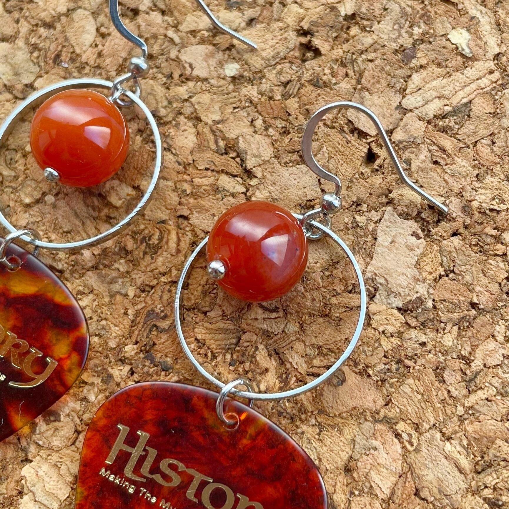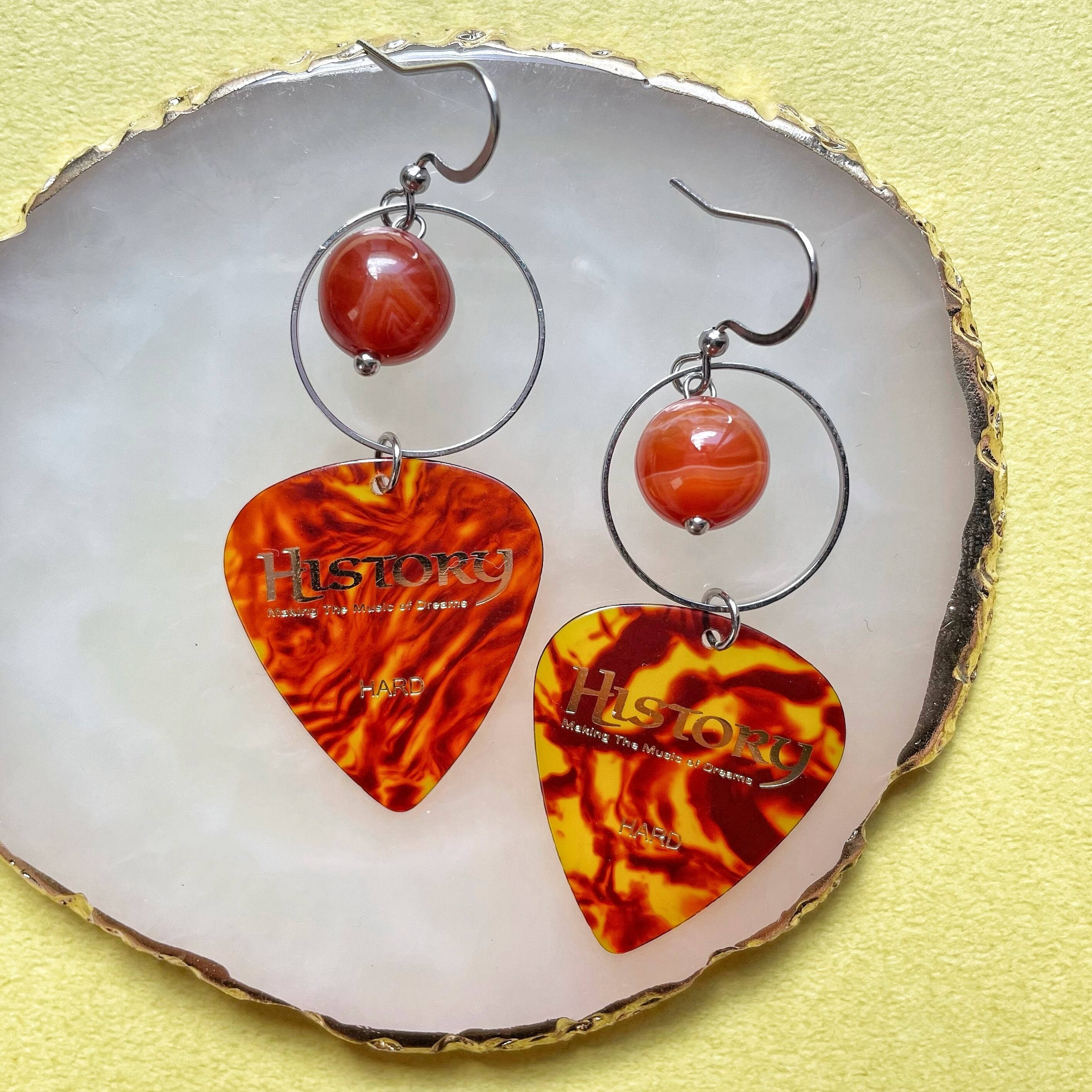 Historyのピックと天然石ビーズを組み合わせたフックピアスです。