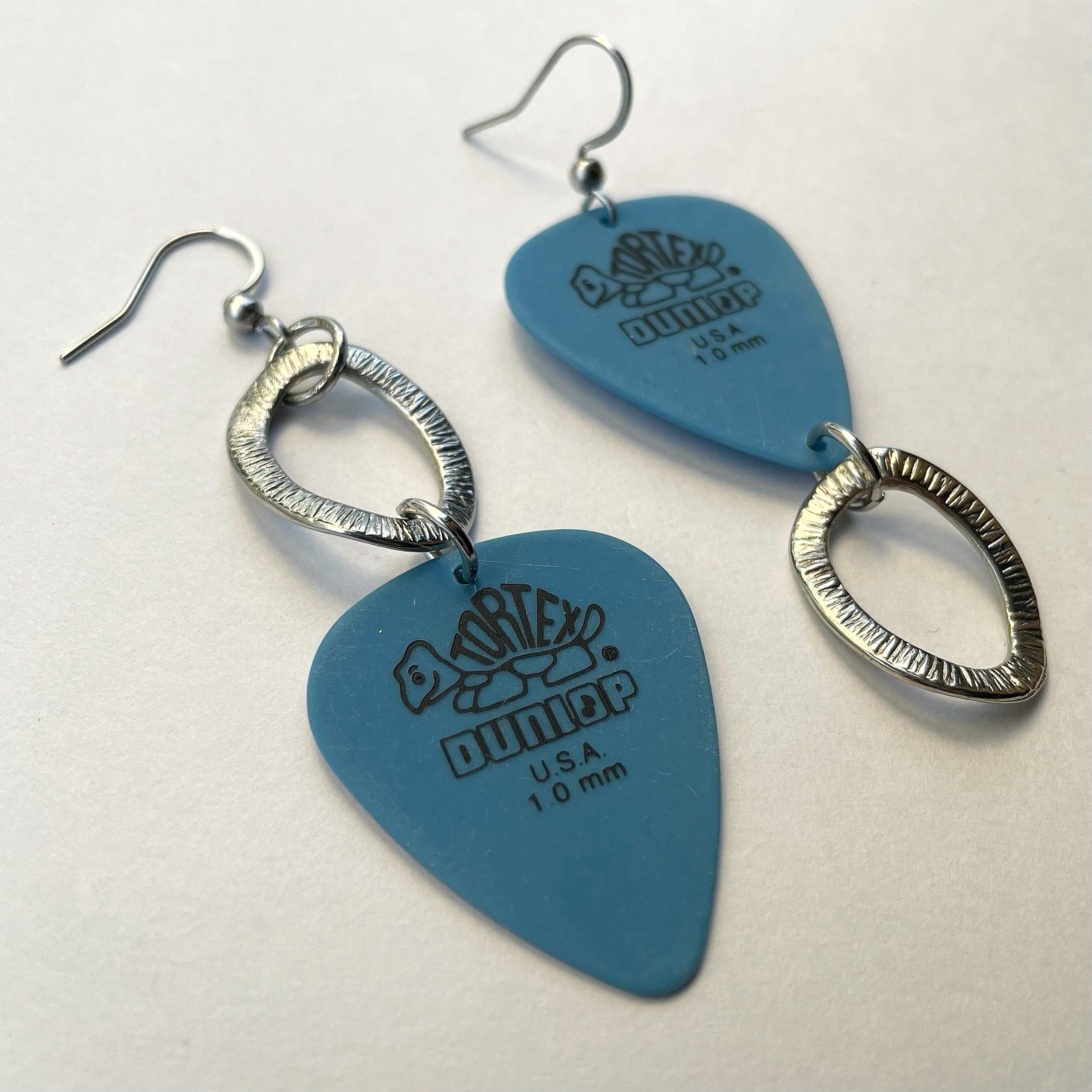 ブルーのピックにシルバーのフープを合わせ、存在感がありながらもシンプルなデザインに仕上げました。