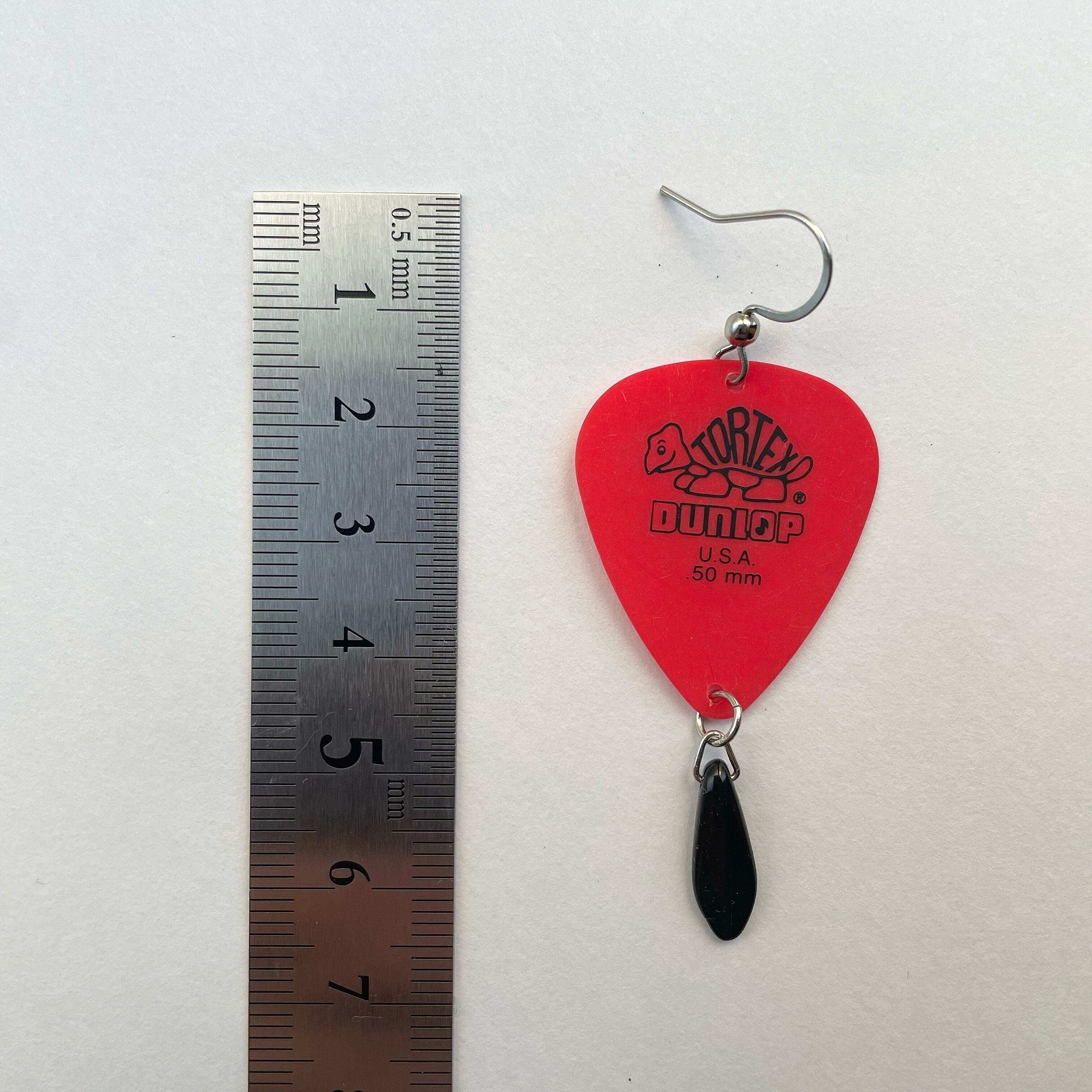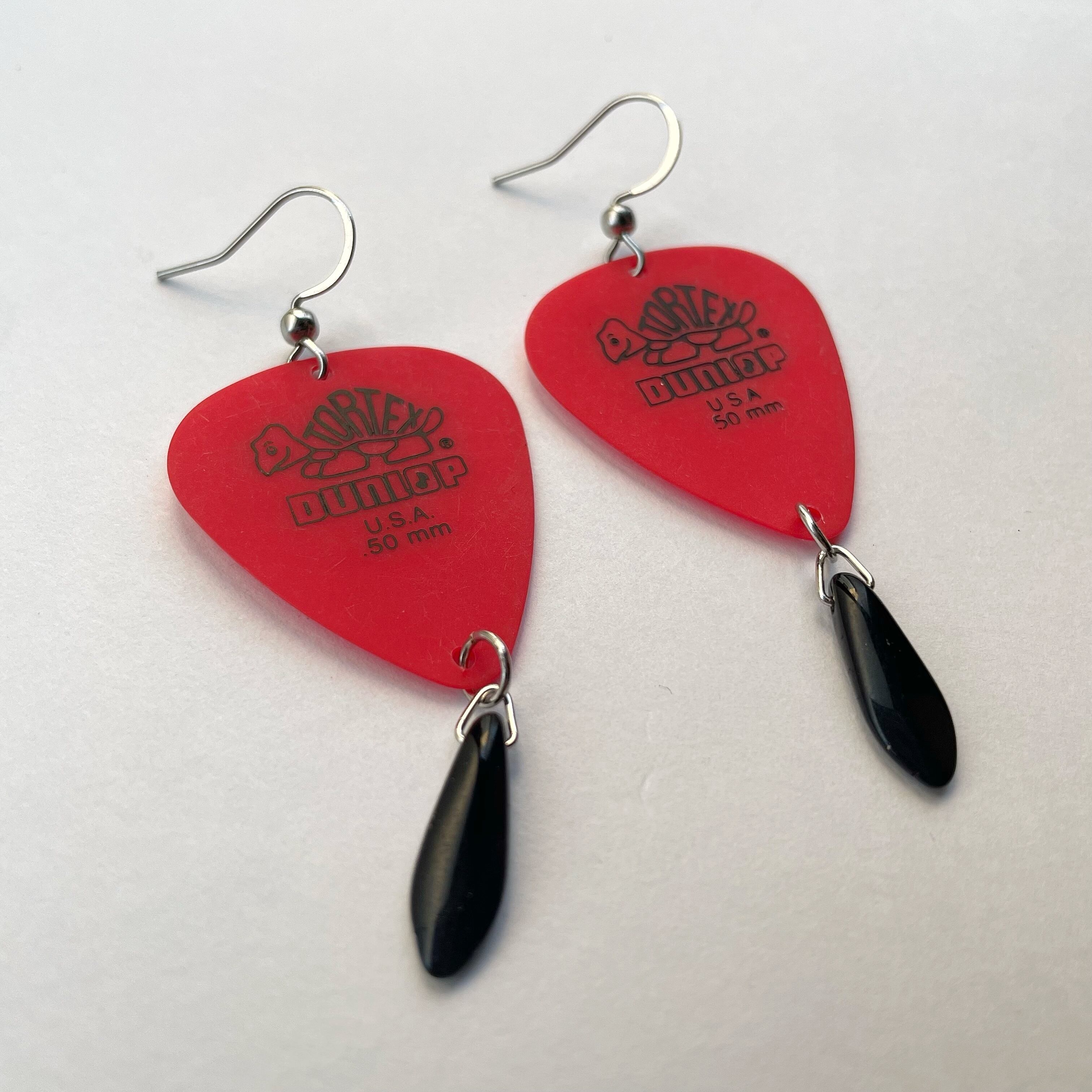 ピックのレッドとチェコビーズのブラックの、パキっとしたカラーコントラストが楽しめる組み合わせです◎