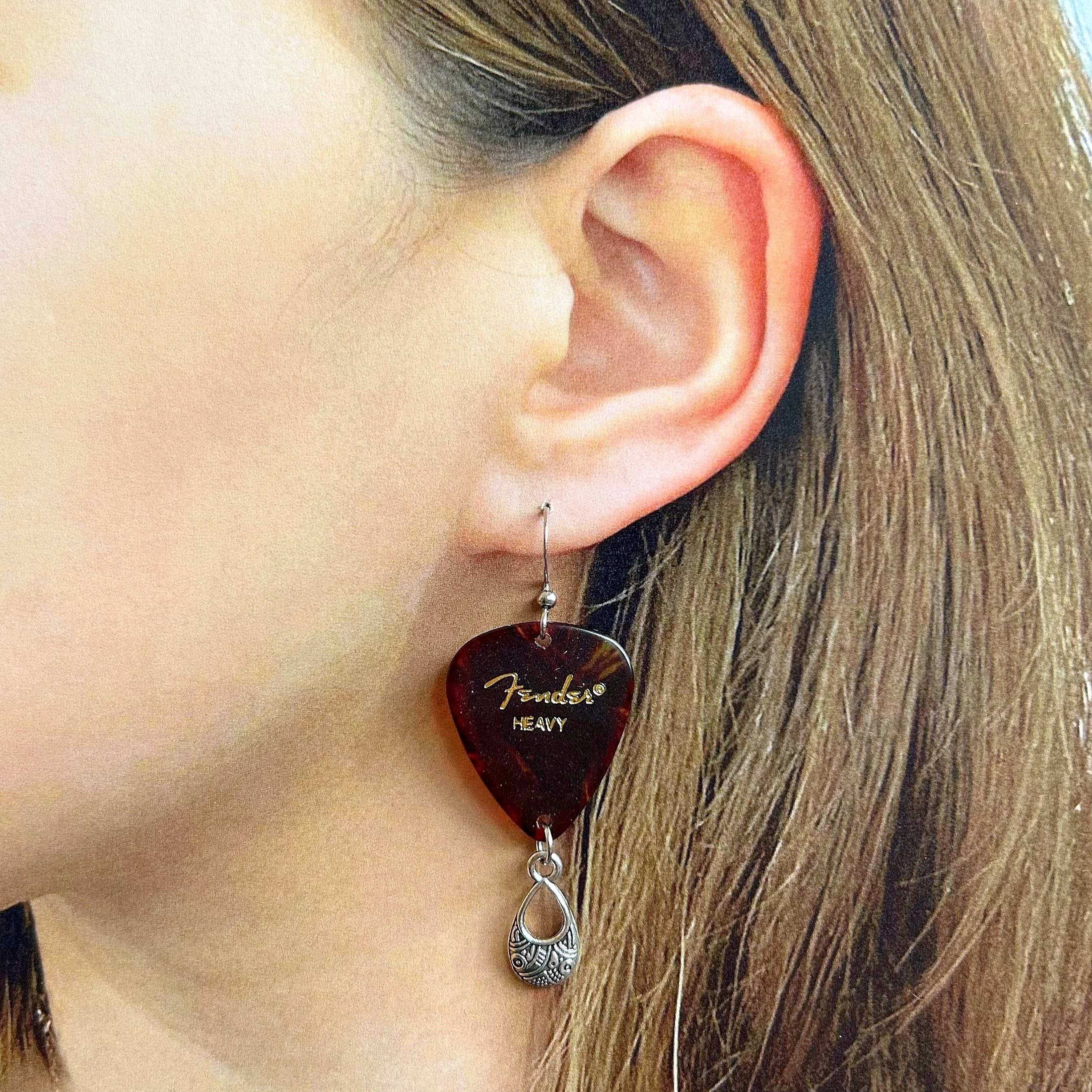 通常より小ぶりなべっ甲カラーのピックにシルバーパーツを合わせ、